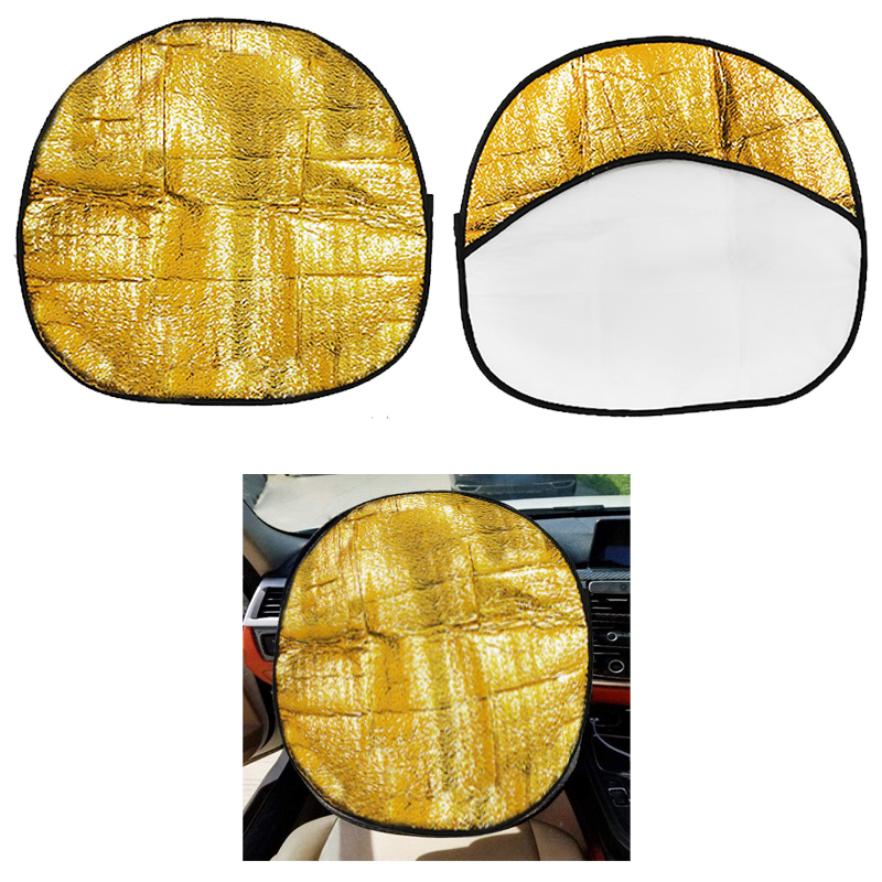غطاء عجلة قيادة السيارة، مظلة شمسية دريكسيون مزدوجة سميكة للحماية من الشمس، قابلة للطي ومضادة للأشعة فوق البنفسجية ( لون ذهبى ، كود : 4571)