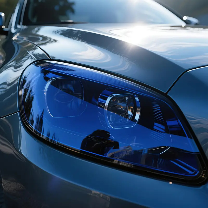 فيلم حماية مصباح السيارة الأمامي والخلفى ، ملصق مصباح الضباب ذاتية اللصق، إكسسوارات السيارات (فامية لون ازرق ، مقاس 120*30سم ، كود : 9011)