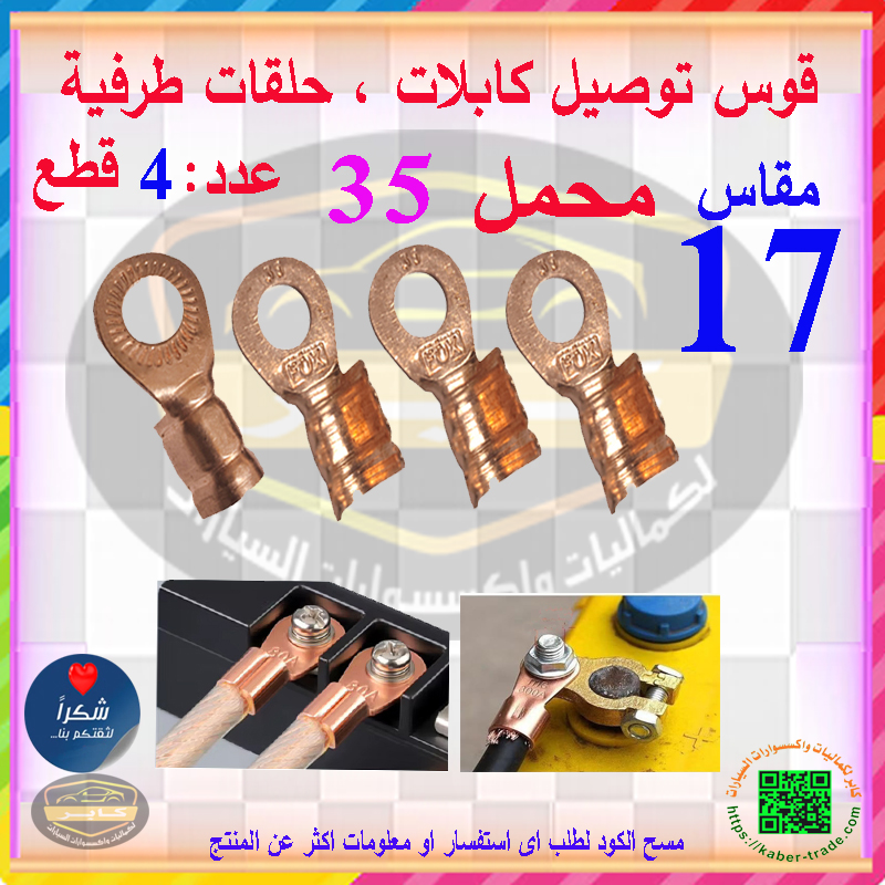 قوس موصلات اطراف كابلات، عروات اسلاك شديدة التحمل، للسيارات و للوصلات الصناعية وملحقات الاسلاك( قوس محمل 35 – مقاس 17 – عدد 4 قطع )