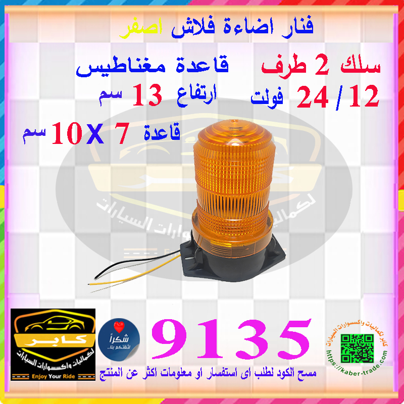 كشاف ليد للطؤارى للسيارات والشاحنات والكرفان والمعدات ، متعدد ومتنوع الاستخدامات ( فنار ليد ، اضاءة اصفر فلاش ، كود : 9135)