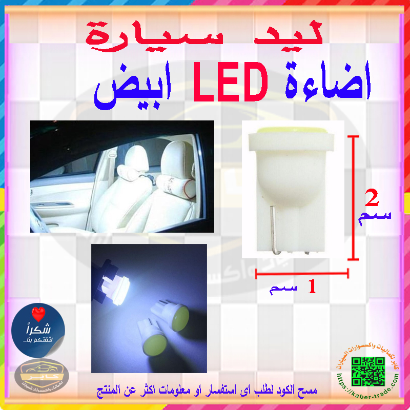 لمبة ليد بدون كعب سيارة – 2 قطعة – لون ابيض