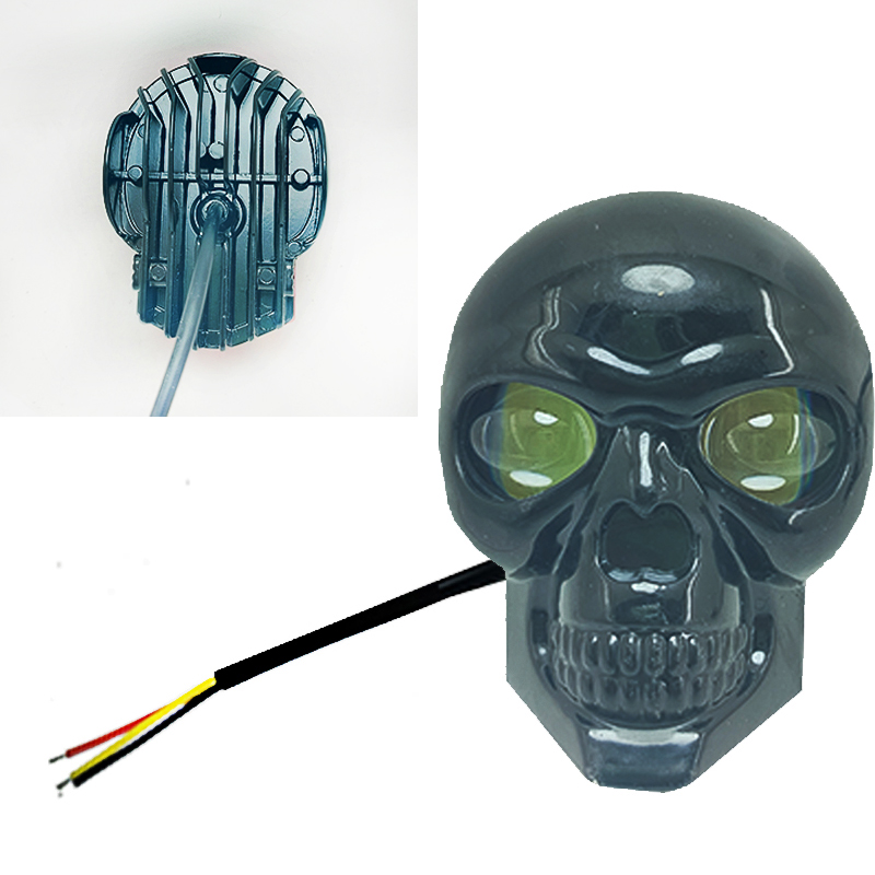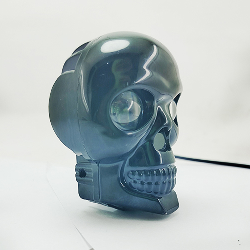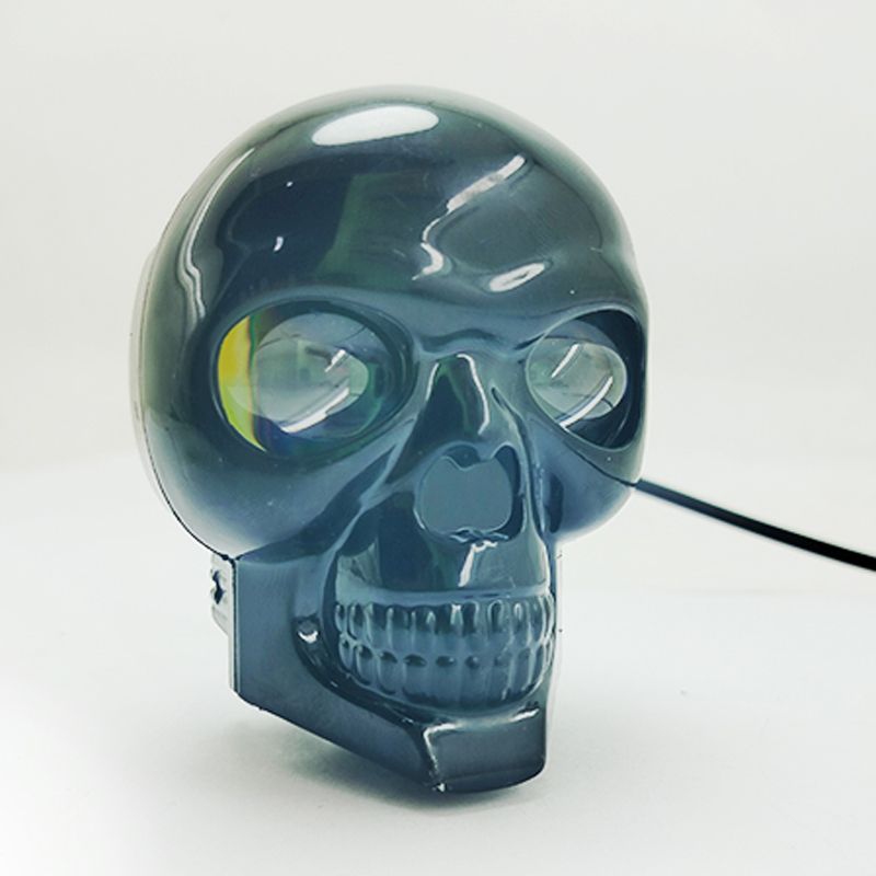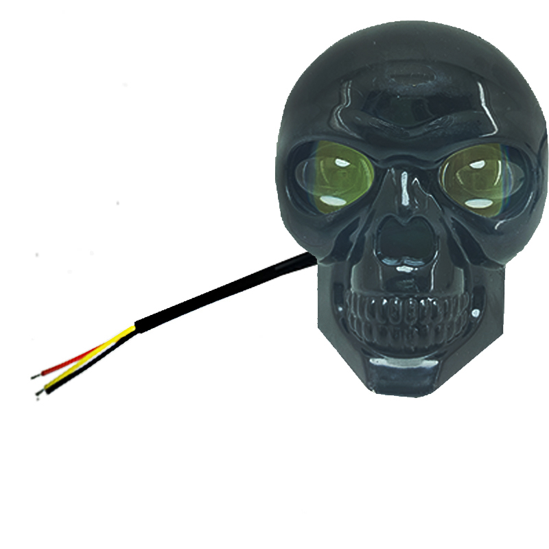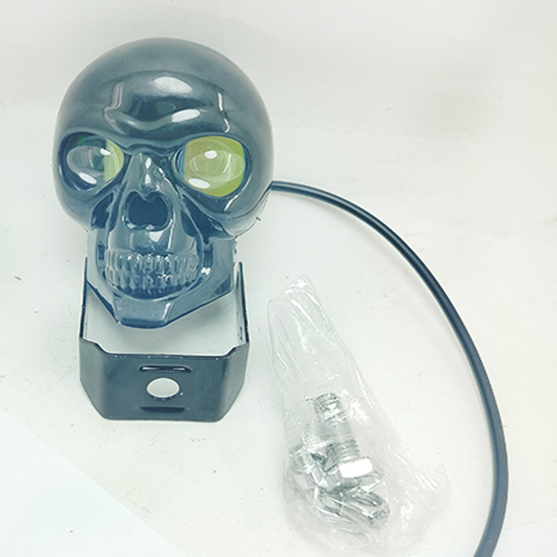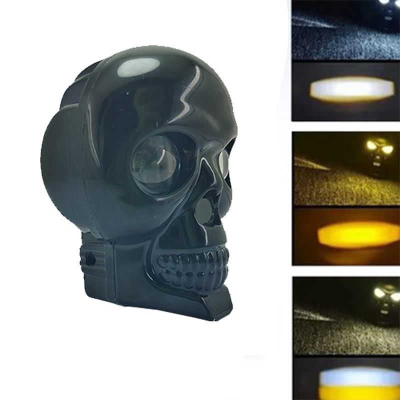 ليد جمجمه لون اسود 2 عدسة ، كشاف ليد تصميم جمجمه لون اسود 2 عدسة ،اضاءة عالية السطوع ابيض واصفر ثابت ورعاش فلاش، مناسب للسيارات والدراجات – قطعة واحدة
