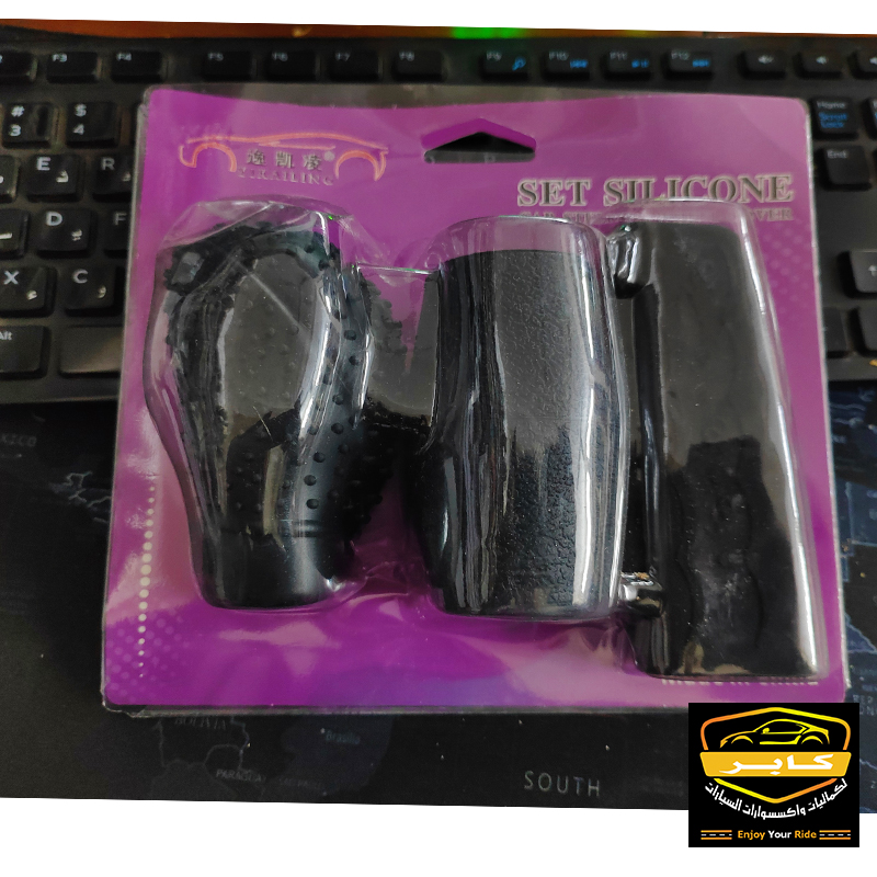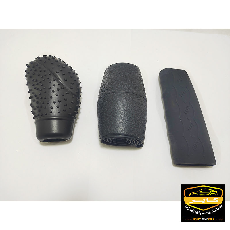مجموعة انيقة وعملية من أغطية السيليكون لعجلة قيادة سيارتك ومقبض فرامل اليد ومقبض ناقل الحركة( لون اسود ، كود :9510)