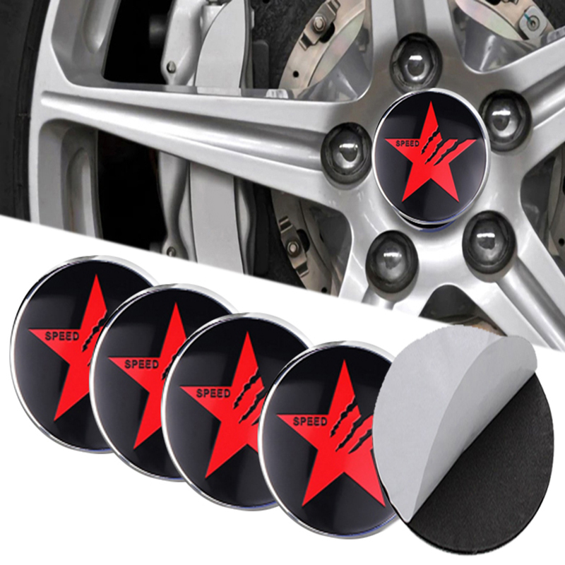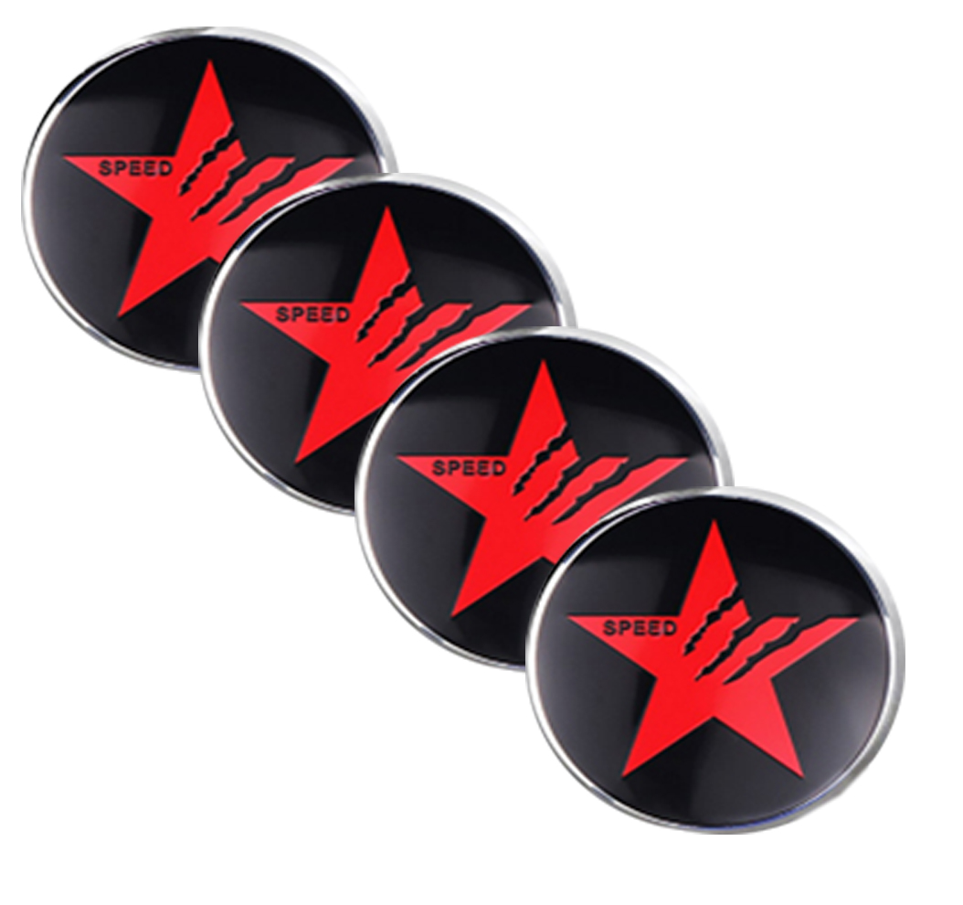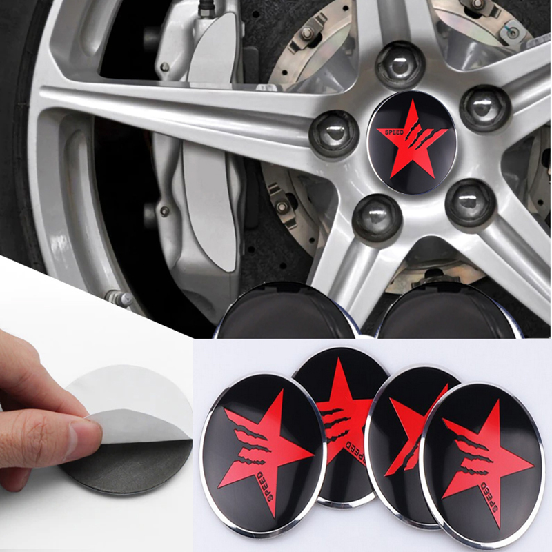 طقم غطاء محور اطارات السيارة لصق مقاس 56 ملم، أغطية مقاومة للغبار والصدأ والماء، ملحقات لاصقة لتزيين جنط العجلة – متوافق مع نجمة سبيد احمر