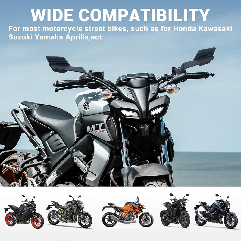 - ✅سهلة التركيب وقابلة للتعديل بالكامل، هذه المرايا الجانبية هي البديل المثالي أو الترقية لأي راكب يقدر الرؤية والسلامة والتصميم الأنيق.