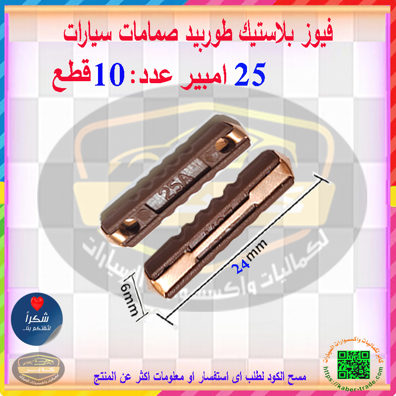 مجموعة من الفيوزات و الصمامات فيوز مناسبة لحماية الدوائر الكهربائية والأجهزة الكهربائية. ( فيوز عضم – 25 امبير – عدد 10 قطع )