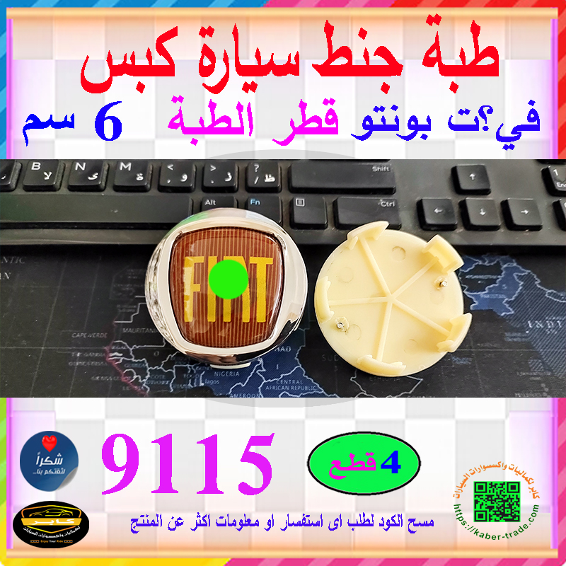 مجموعة من 4 غطاء محور جنط اطارات السيارة . مناسبة لمحاور مركز العجلات الأمامية أو الخلفية ( فيات بونتو وبعض الموديلات الاخرى ، قطر 6 سم ، كود : 9115)