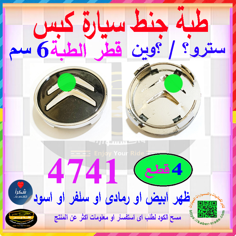 مجموعة من 4 غطاء محور جنط اطارات السيارة . مناسبة لمحاور مركز العجلات الأمامية أو الخلفية ( سترووين ، قطر 6 سم ، كود : 4741)