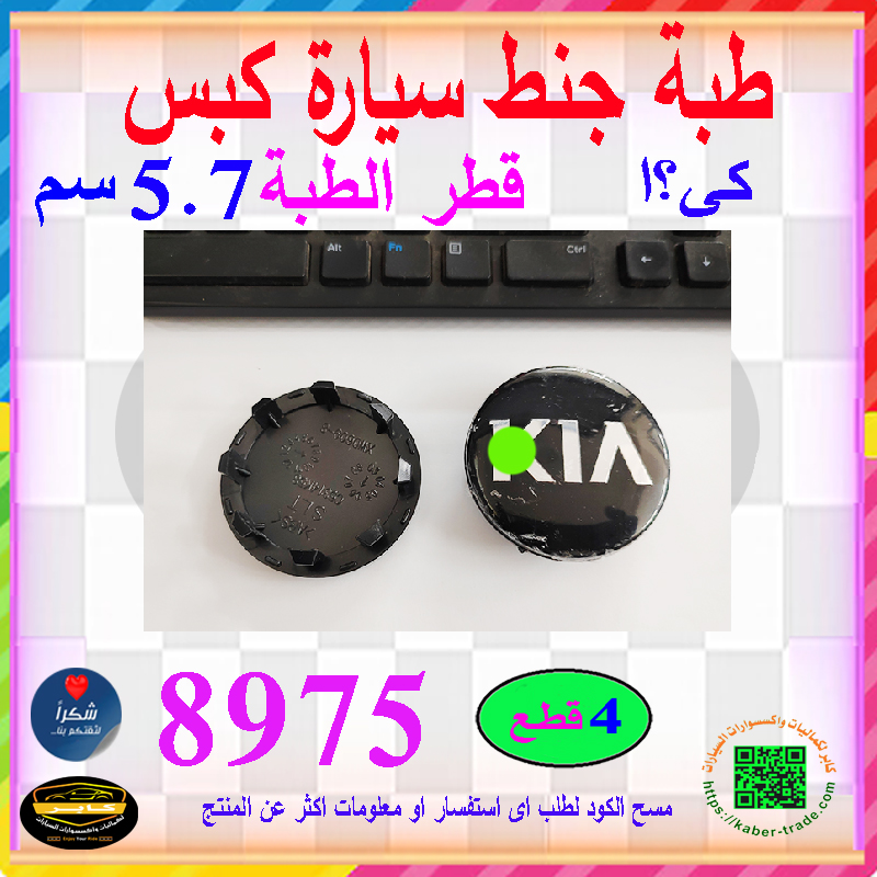 مجموعة من 4 غطاء محور جنط اطارات السيارة . مناسبة لمحاور مركز العجلات الأمامية أو الخلفية ( متوافقة مع كيا ، قطر 5.7 سم ، كود : 8975)