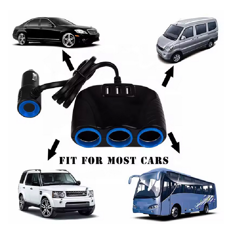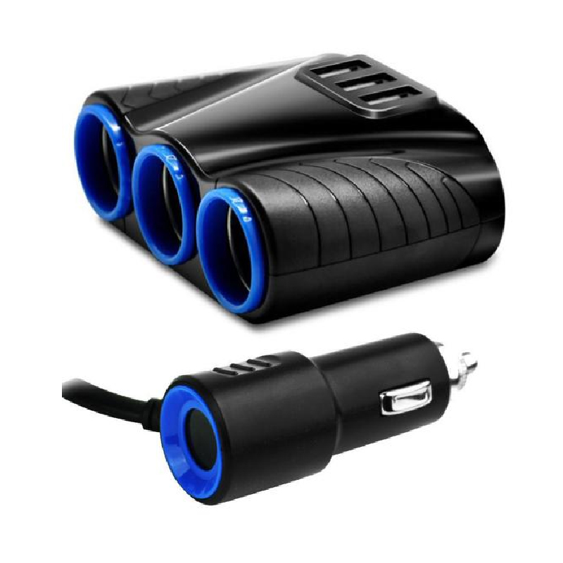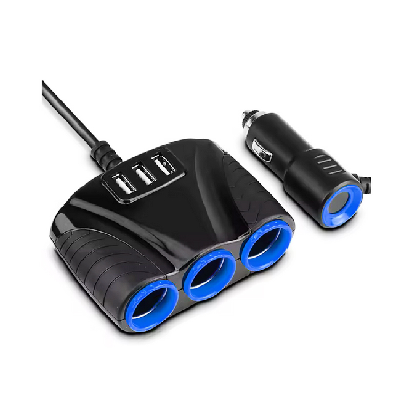 محول الولاعة فى السيارة ، متعدد الاستخدامات فى السيارات، موزع مقبس ولاعة السيارة ، قابس متعدد الفتحات، للسيارات والشاحنات (مشترك 3 يو اس بى – اسود – 3عين ، كود : 9000 )