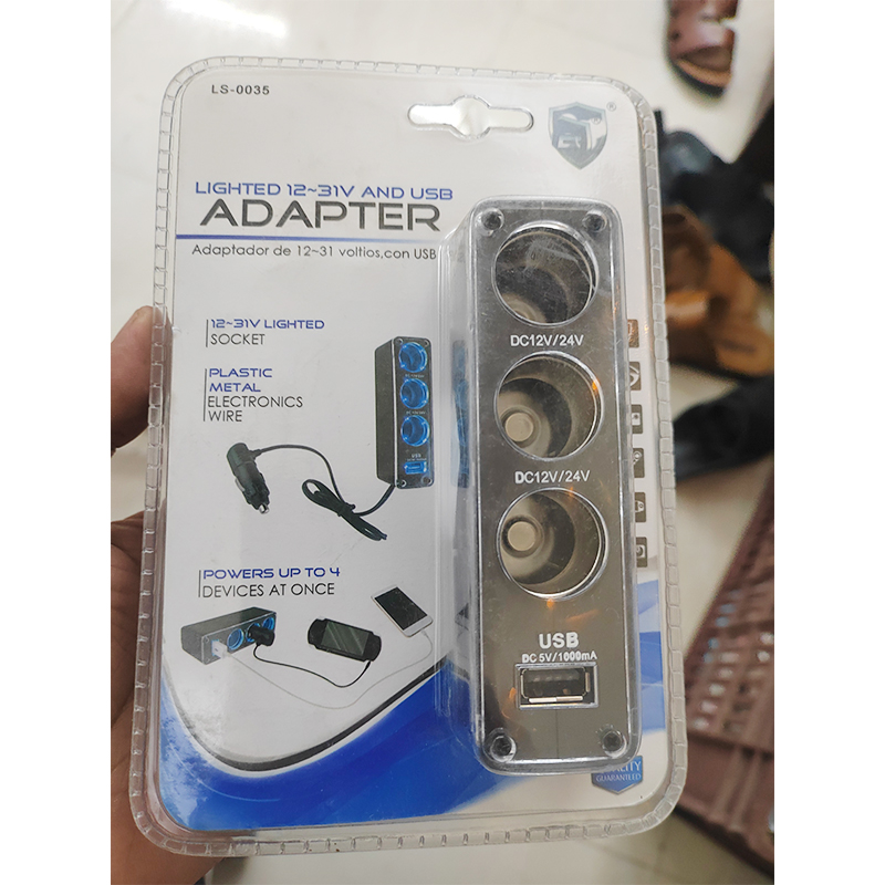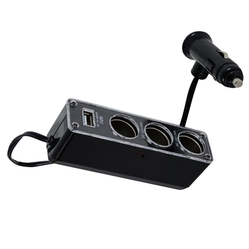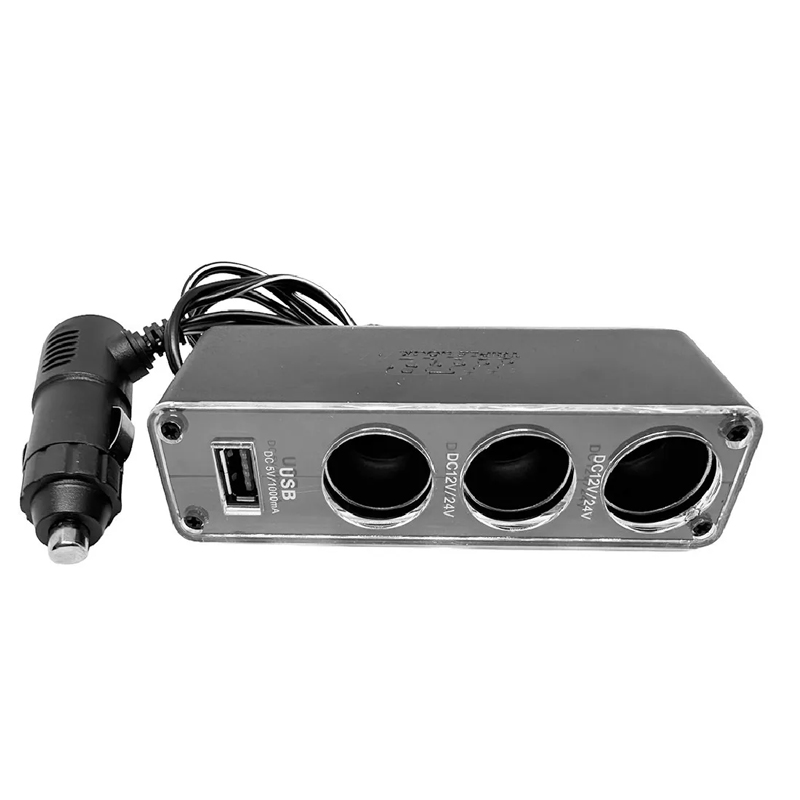 محول ولاعة السجائر للسيارة، مقبس متعدد لولاعة السجائر، مشترك ولاعة سيارة 3 مخرج و 1 يو اس بي ، 12 فولت ، 24 فولت (3عين-1USB ، كود : 9653)