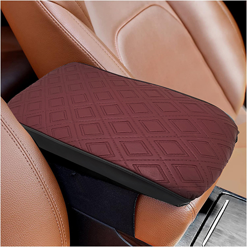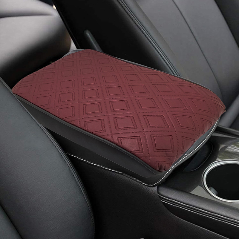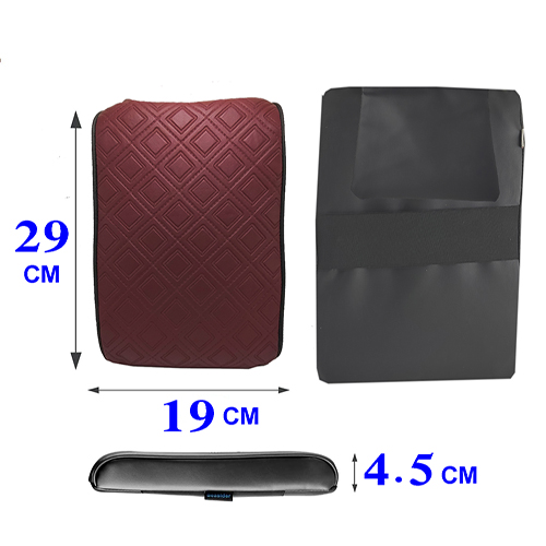 مسند ذراع للسيارة من الجلد ، تكاية وغطاء مسند ذراع وحدة التحكم ، منتج عملى ومريح لليد مزود بجيب خلفي للمتعلقات – لون نبيتى احمر فى اسود