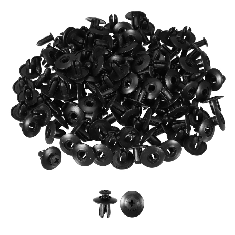 - ✅ تتضمن العبوة: 100 (+/-2%) قطعة من مشابك تثبيت غطاء ممتص الصدمات.