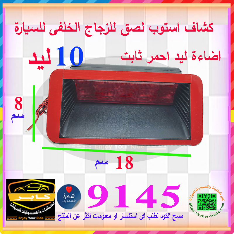مصباح فرامل ثالث باضاءة ليد عالية ، التركيب لصق على الزجاج الخلفى للسيارة ( 10 ليد ، اضاءة احمر ، كود : 9145)