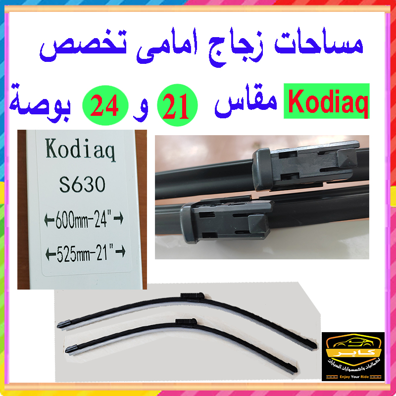 ممسحة زجاج مقدمة السيارة لجميع الأحوال الجوية، تلامس فائق للزجاج الأمامي، تقنية مسح خالية من الخطوط ( 2 قطعة ، تخصص متوافقة مع كودياك S630 ، مقاس 21/ 24 بوصة ، كود : 9461)