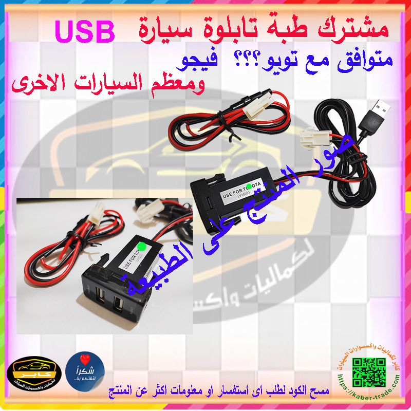 منفذ تابوة السيارة USB مستطيل ، شاحن و اديو ( متوافق مع تويوتا فيجو ومعظم السيارات الاخرى ، كود: 8500 )