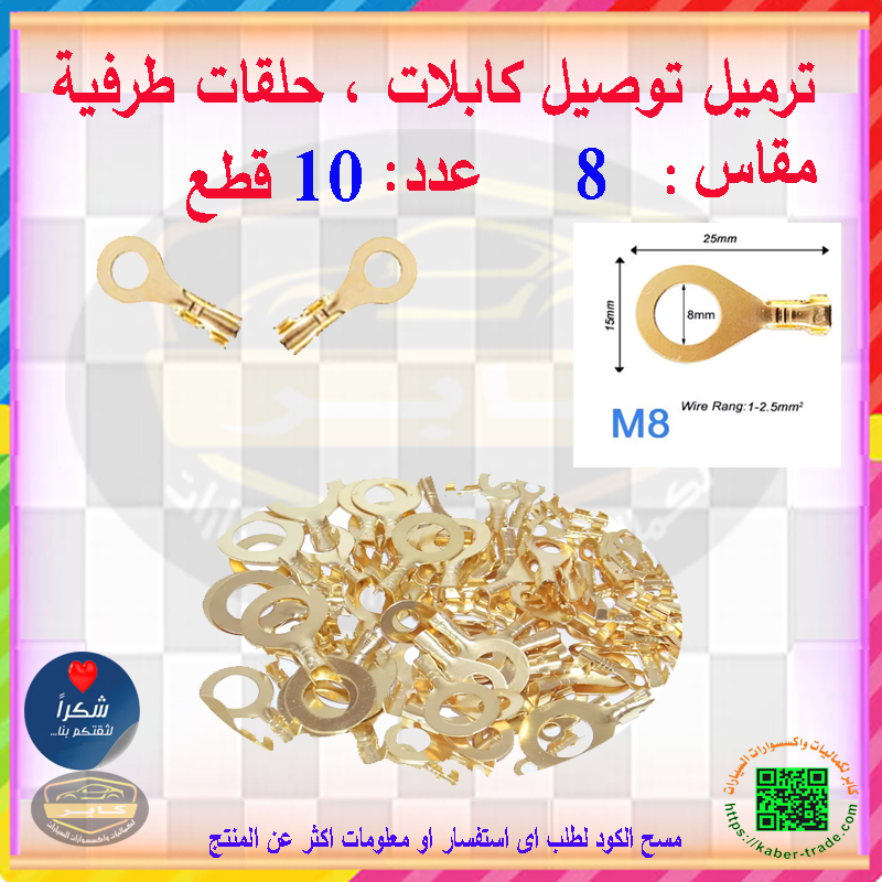 موصلات كابلات ، حلقة طرفية كابل ، ترميل حلقة العروات موصلات الاسلاك والكابلات ( ترمل/ ترملة مقاس 8 ، عدد : 10 قطع )