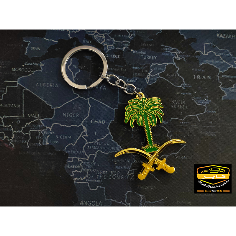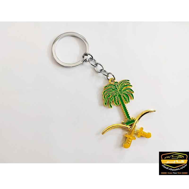 ميدالية مفاتيح سيفين ونخلة التي تجمع بين الأناقة والفخر الوطني. هذه الميدالية الذهبية مصنوعة من معدن عالي الجودة، ( شعار المملكة العربية السعودية ، ميدالية معدن ، كود : 9483)