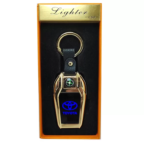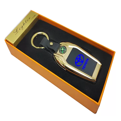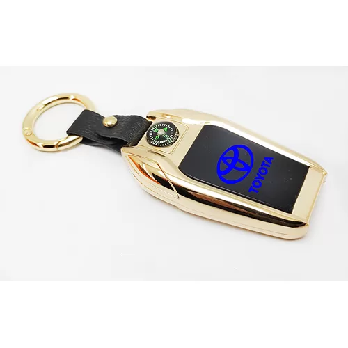 - ميدالية وسلسة مفاتيح سيارة الكترونية ولاعة سخان وكشاف وشاشة لوجو السيارة تعمل بالشحن منتج عالى الجودة ومميز – متوافق مع تويوتا – لون دهبى