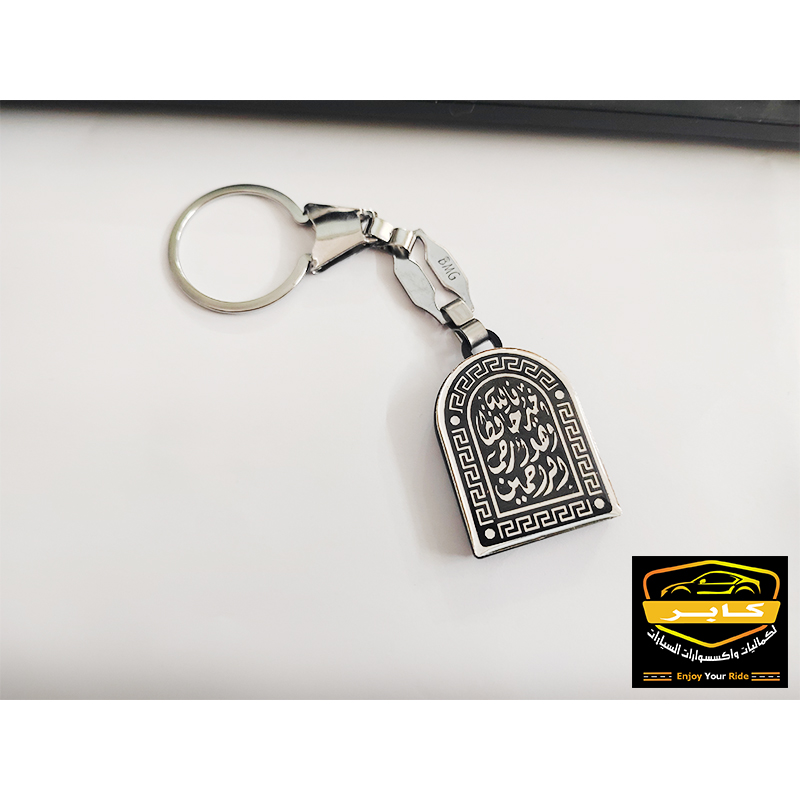 ميدالية وسلسلة مفاتيح استانلس شكل فضة لمفاتيح السيارة او المنزل او المكتب (عبارة ” فالله خير حافظ وهو ارحم الراحمين ” ، كود : 9871)