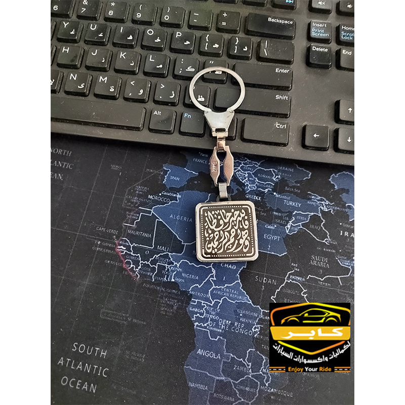 - ✅ميدالية وسلسلة مفاتيح استانلس (شكل فضة ، الجملة مكتوبة على الوجهين داخل كريستال شفاف) لمفاتيح السيارة او المنزل او المكتب
