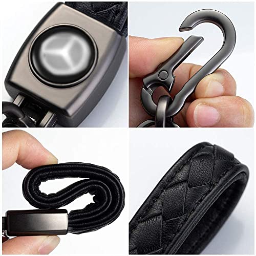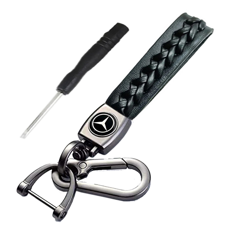 ميدالية وسلسلة مفاتيح سيارة جلد مضفرة متوافقة مع – مرسيدس – لون اسود