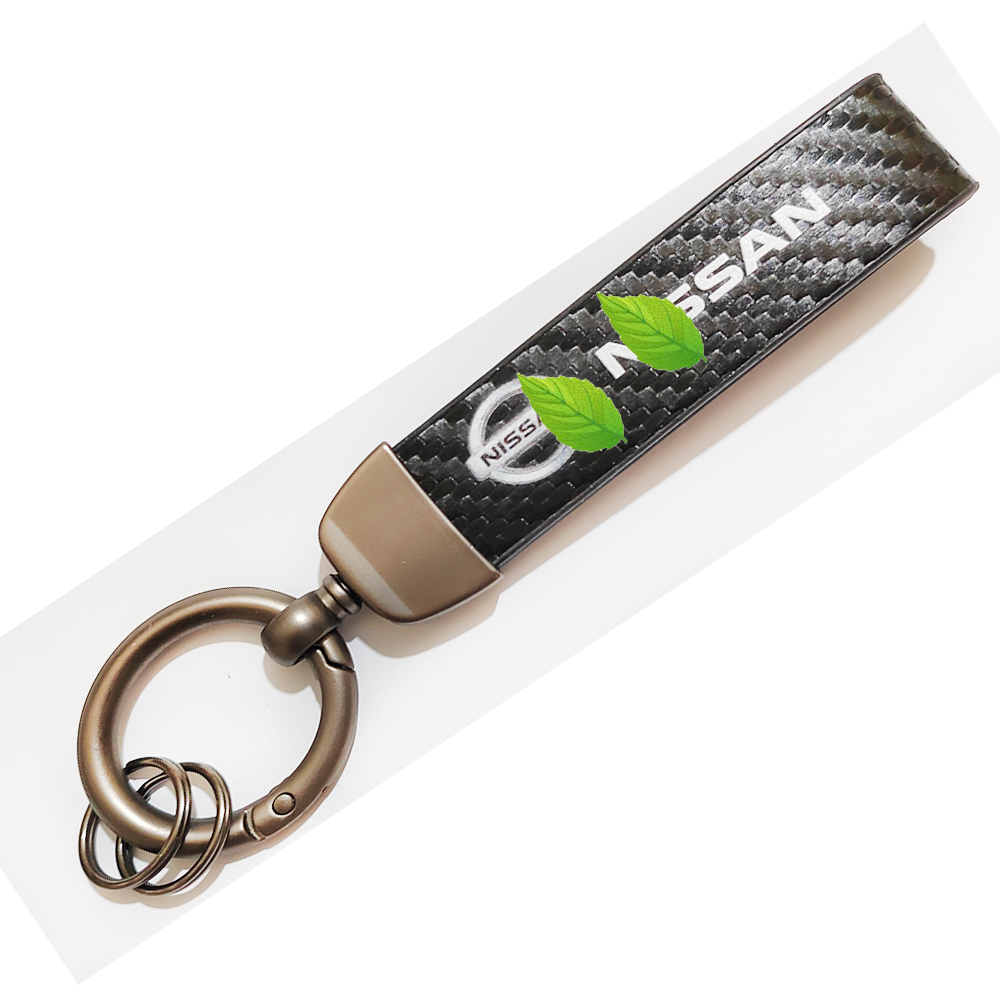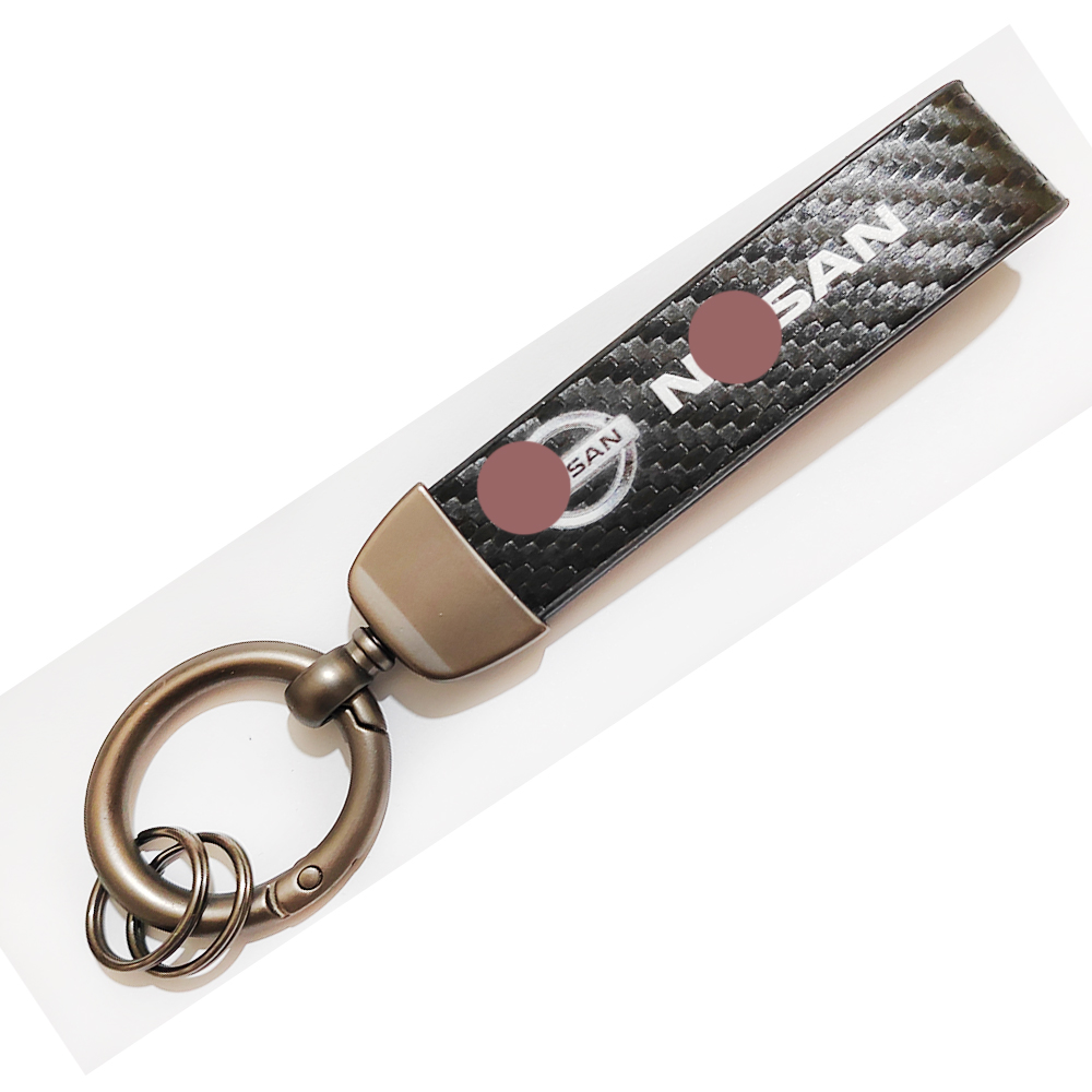 ميدالية وسلسلة مفاتيح سيارة كاربون اسود من الجلد وحلقات معدن مناسبة لمفاتيح السيارة والدراجات النارية ومفاتيح العائلة – متوافقة مع نيسان