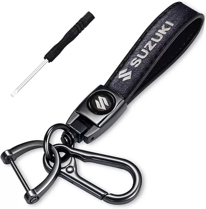 ميدالية وسلسلة مفاتيح سيارة من الجلد وحلقات معدن مناسبة لمفاتيح السيارة والدراجات النارية ومفاتيح العائلة – متوافقة مع سوزوكى