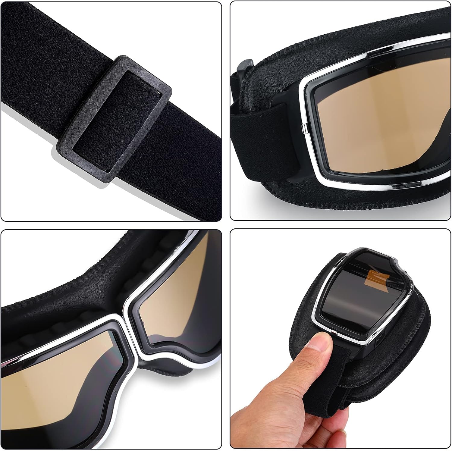 - ✅【نظارات للدراجات النارية】- نظارات ملونة آمنة وعالية الجودة، رؤية محيطية واسعة، بطانة إسفنجية من الجلد الناعم، مريحة، نظارة شمسية كلاسيكية رائعة ضرورية لك. تهوية مضادة للصدمات مع إطار معدني من الكروم والجلد الخام المستورد، يناسب النظارات، وليس من السهل كسره بفضل المواد عالية الصلابة. جميع العدسات مصنوعة من مادة عالية الجودة والمقاومة للكسر ومتينة بما يكفي للارتداء لفترات طويلة.