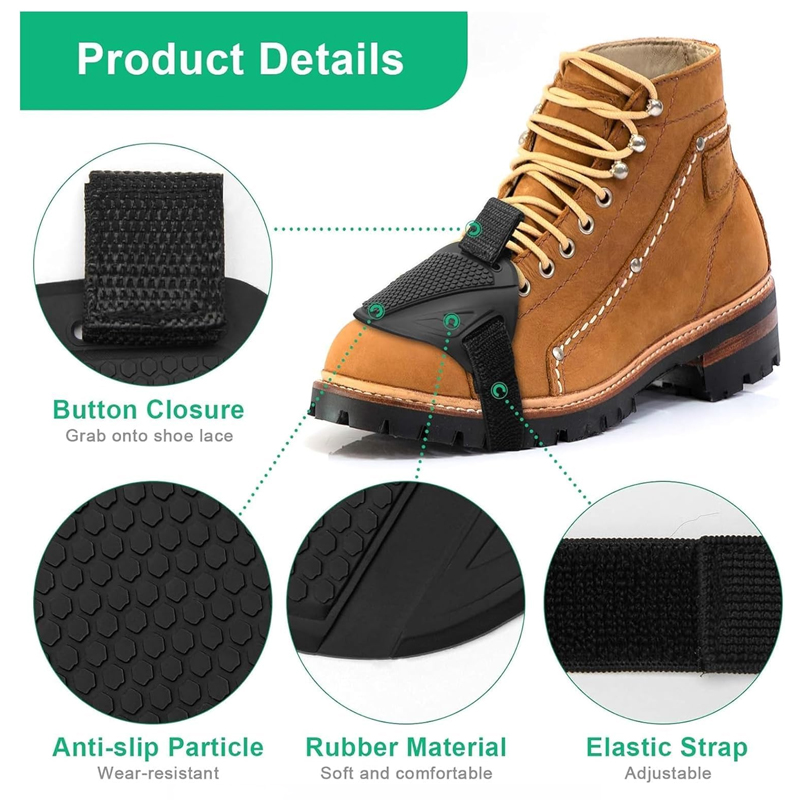 - ✅ يحمي الأحذية من احتكاك ناقل الحركة – يمنع علامات الاحتكاك والبقع والأضرار الناجمة عن تغيير تروس الدراجات النارية، مما يحافظ على حذائك يبدو جديدًا ويحافظ على عمره.